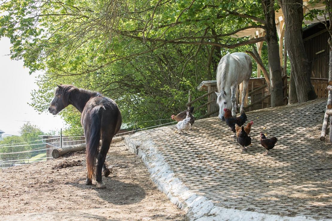 • Auslauf - ca 1600qm, matschfrei befestigt, mehrere Ebenen, unterschiedliche Böden, Sandliegefläche