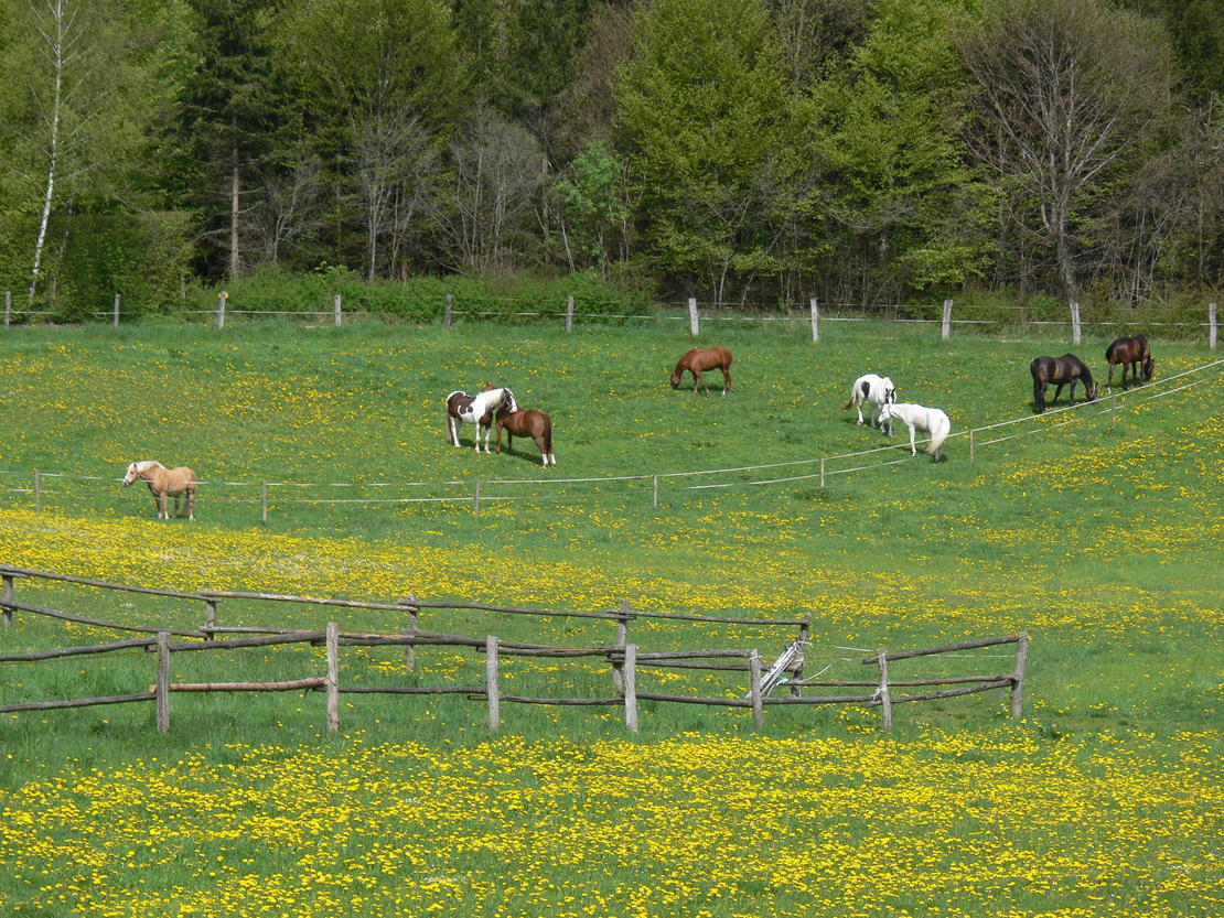 Unsere familiär geführte Pferdepension liegt in sehr ruhiger Lage umgeben von Wald und Wiesen. Wir bieten Innenboxen, Außenboxen und auch Paddockboxen, alle mit Vollpension. Zur Anlage gehören neben einem Wasch- und Putzplatz auch ein Sandplatz und eine Bewegungshalle. Außerdem steht ein wunderschönes Gelände zum Ausreiten zur Verfügung. Die Pferde kommen täglich raus. Je nach Jahreszeit und Witterung auf Sommer- oder Winterweiden oder auf Paddocks.