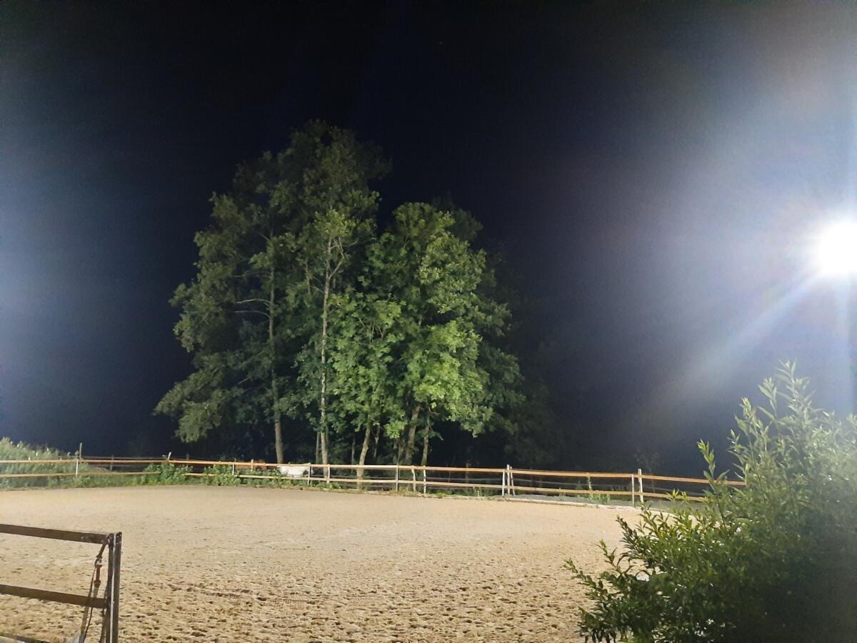 Ganzjahresreitplatz mit VoltaFloor Belag, Flutlichtanlage (LED Technik) und Bewässerungsanlage.