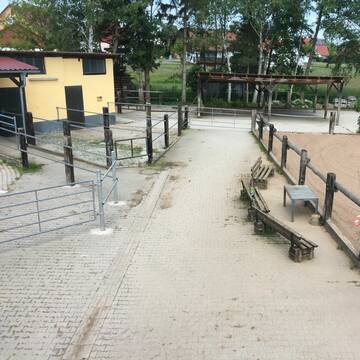 Alle Boxen sind mit beheizbaren Tränkern ausgestattet. Die gesamte Hofanlage ist komplett befestigt.