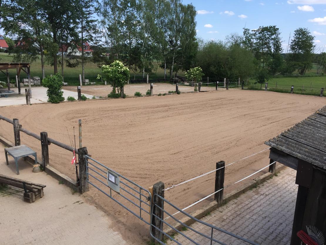 Zudem haben wir einen Reitplatz mit Flutlicht. Das Heu wird aus eigener Ernte selbst hergestellt und ist frei von Düngung.