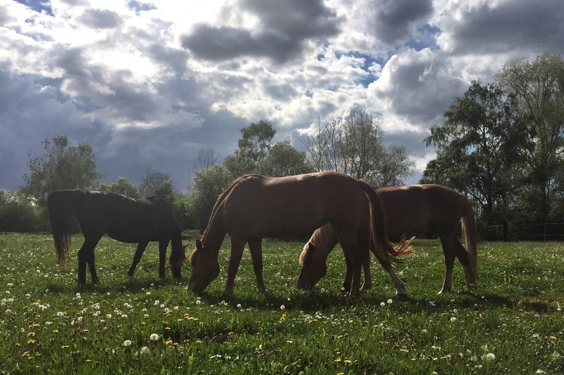 Die Pferde die wir betreuen - und natürlich auch unsere eigenen – kommen bei Wind und Wetter auf unsere riesigen Koppeln. Wir haben eine große gemischte Herde und eine Weide nur für Wallache. Für einen Aufpreis sind auch Extrakoppeln möglich.