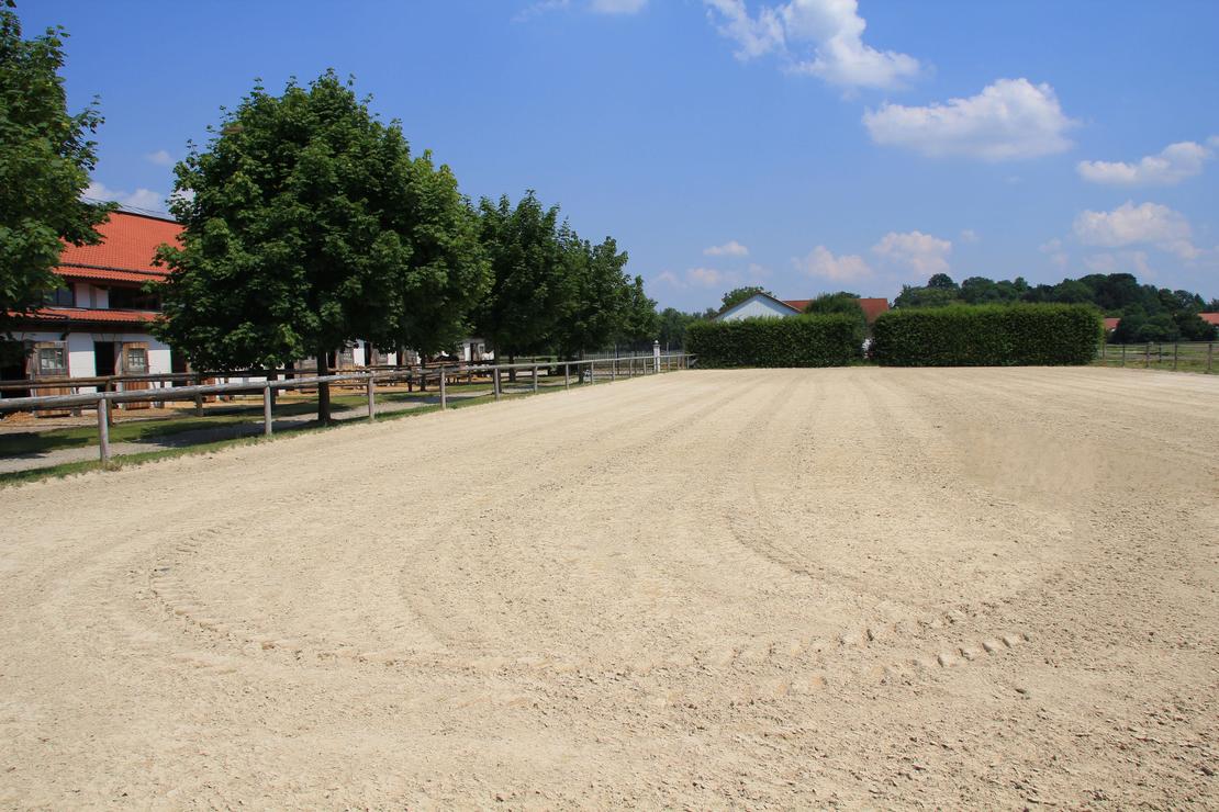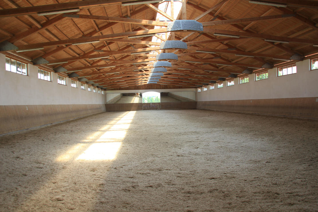 Der Reithallen- und Außenplatzbelag (Sand-Textilgemisch) wird täglich bearbeitet und nach Bedarf gewässert. Der Reithallen- und Außenplatzboden VoltaFLOOR stammt von der Firma Feichtinger Reitplatzbau und bietet optimale Trainings- und Turniereigenschaften, sowohl für den Dressur- als auch für den Springsport.