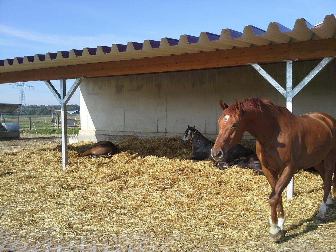 Aktiv-Bewegungsstall mit individuell einstellbarer Futtermenge, Kraftfutter, Haferfreipellets, Mineralfutter,... , Selektion für die Weidezeit, all you can eat Heubereich und individuell einestellbare Heufresszeiten, 800m² Strohliegefläche auf 3 Gebäude verteilt und 5000m² befestigte Aussenflächen mit drei unterschiedlichen Laufböden für optimale Hufbewegung. Individuelle Betreuung und Futterberatung! Wir bieten ihnen ein optimal versorgtes Pferd. ( Futter enthalten u.a. Selen, Biotin, Zink etc ) Dieses System lässt keine Wünsche offen. Gönnen Sie ihrem Pferd die Freiheit mit gleichgesinnten Pferdefreunden, das Leben zu geniesen ohne eingesperrt zu sein. Gönnen Sie sich Unabhängigkeit und ein Gutes Gefühl wenn man mal keine Zeit hat das Pferd zu bewegen.