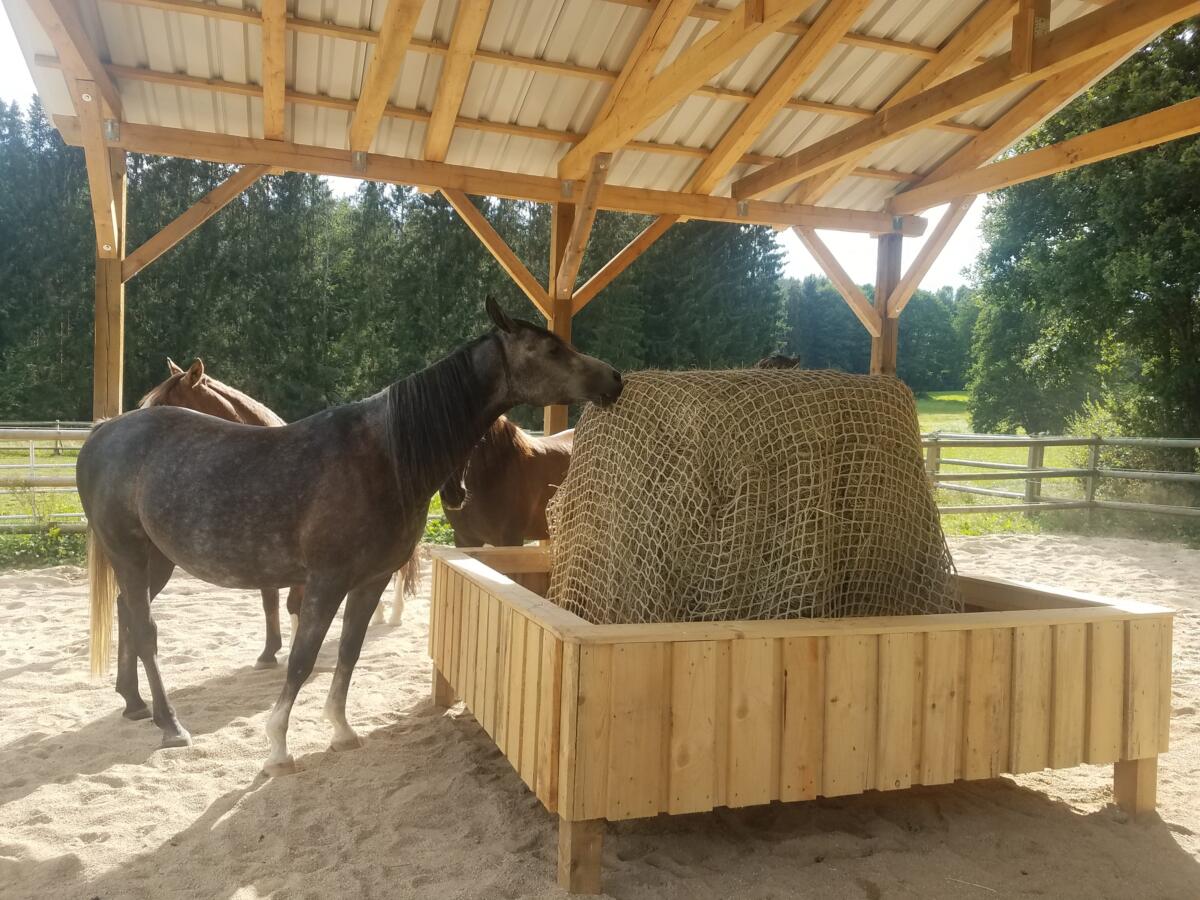 OffenstallRaufutter: Heu ad libitum auf den AusläufenFütterung mit Kraftfutter 2x täglich Misten 2x täglich Weidepflege Ein Sattelschrank Ein Sattelhalter Information des Besitzers im Notfall |
