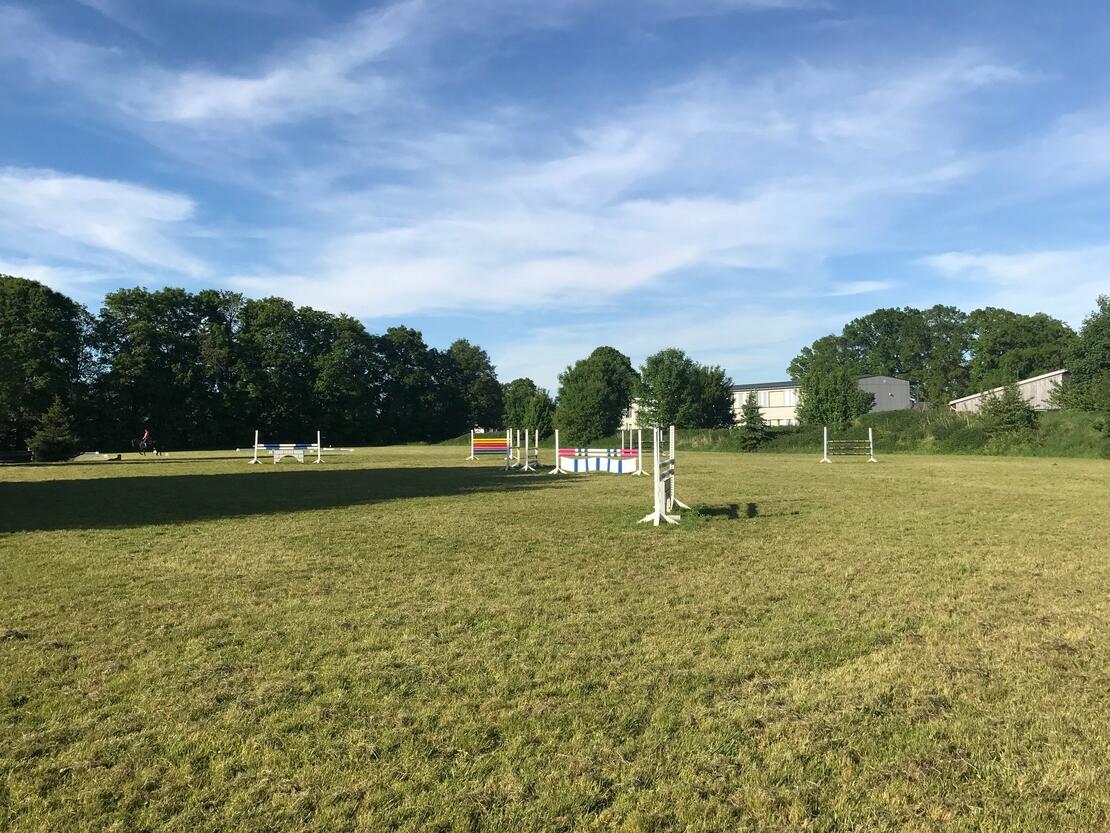• große gepflegte Reitwiese mit Parcours und Naturhindernissen
