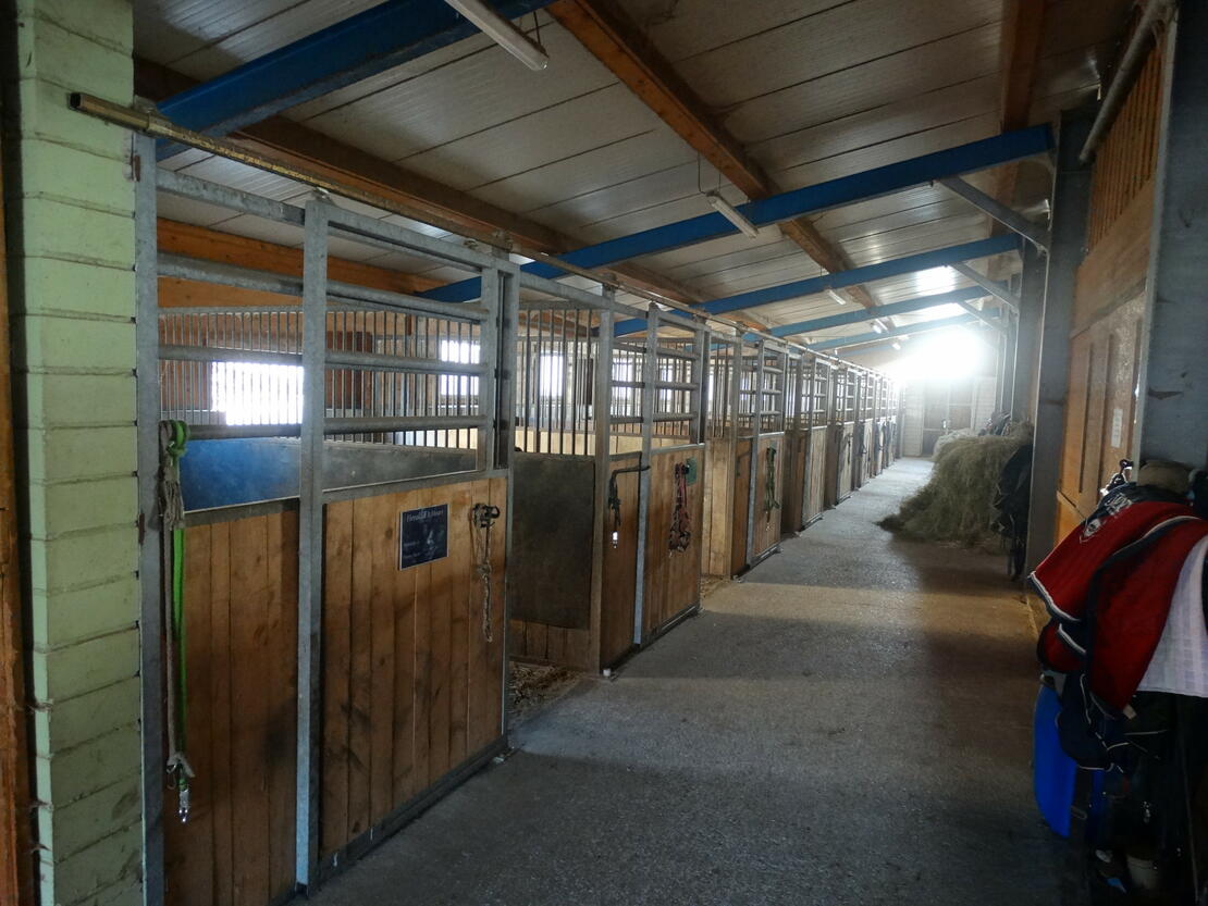 Des weiteren verfügt die Anlage über ein neues Stallgebäude mit 10 Paddockboxen mit einer größe von 12m2 und einen Paddock von 20m2.