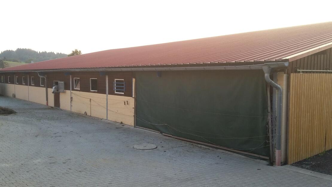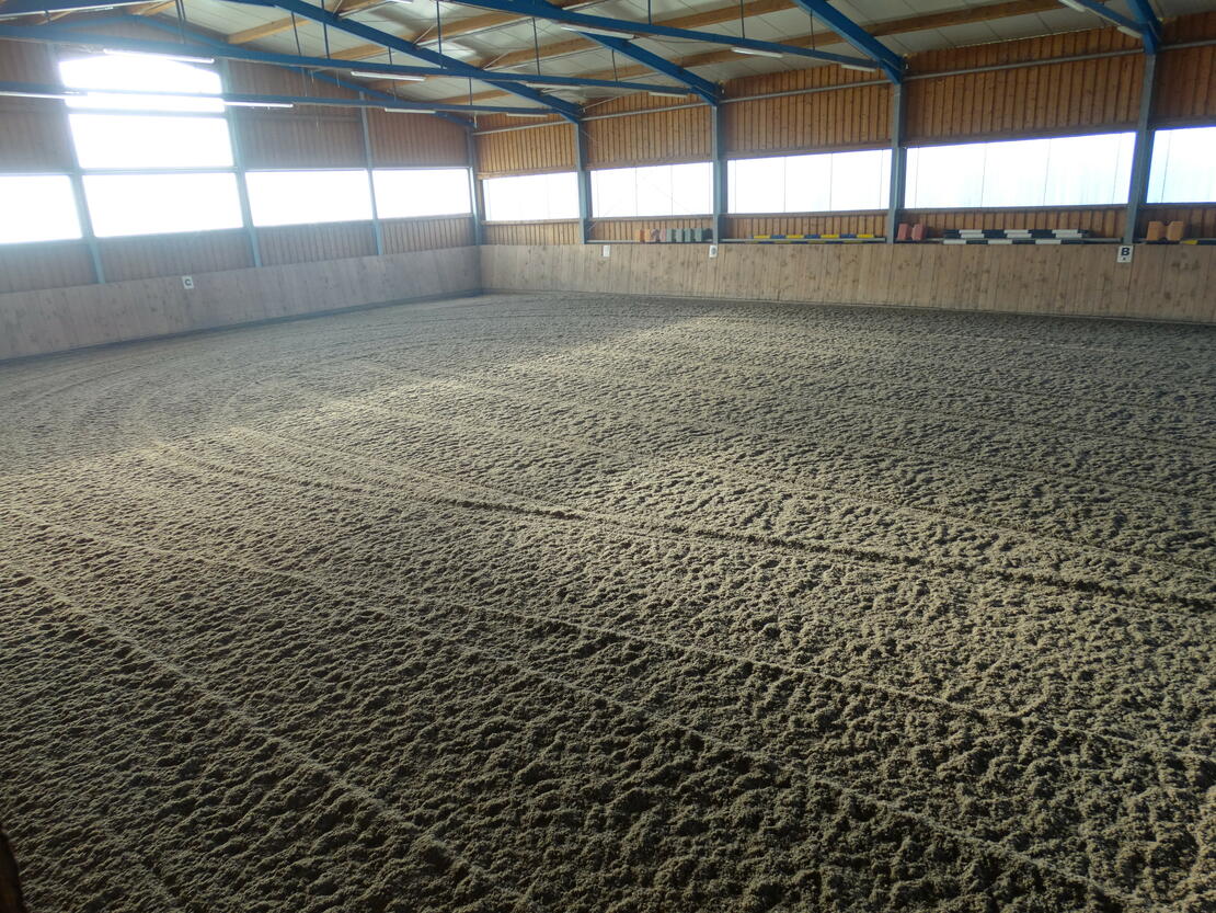 Wir sind ein kleiner Pensionsstall mit einer 20×40m großen und hellen Reithalle mit Textil Boden. Die Pferde kommen jeden Tag in getrennten Herden bzw. Gruppen auf die Koppel (Sommer wie Winter). Gemistet und gefüttert wird 2 mal täglich. Des weiteren verfügt die Anlage über drei Sattelkammern im Winter beheitzt, ein gemütliches Stüberl, Waschplatz, Gummimatten in den Boxen und ein schönes Ausreitgelände.