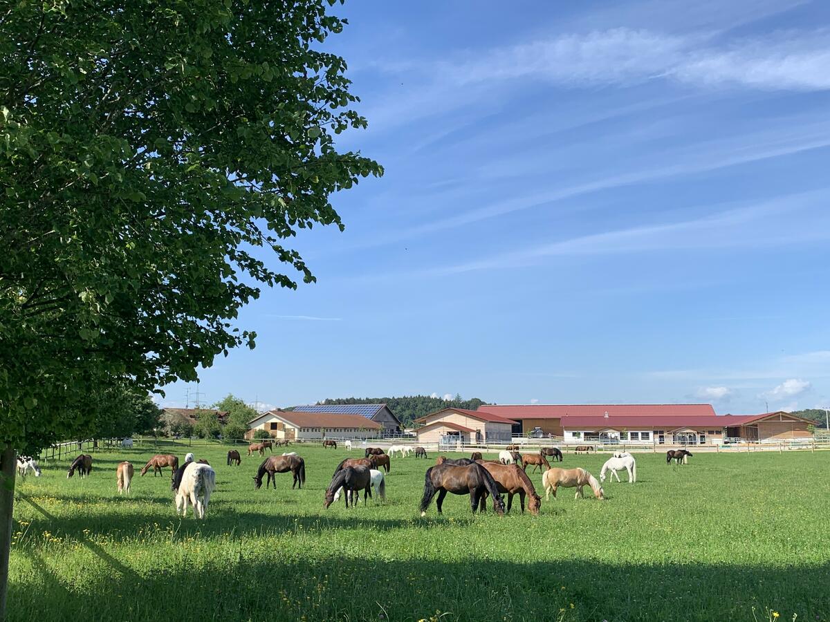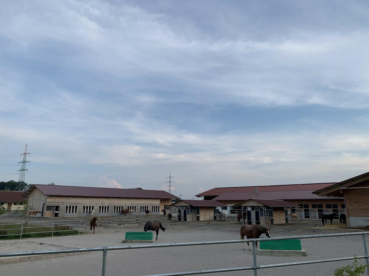 Aktivstall für Wallache mit individueller Heufütterung , individuelle Kraftfutterfütterung, individueller Koppelgang Reithalle 20x 40 Reitplatz 25x 60 Roundpen Offenstallgruppe mit 24 Stunden Heu Neu: Mini Allergiker Laufstall für leichtfuttriges Kleinpferd mit Liegematte; Spähne, bedampftes Heu