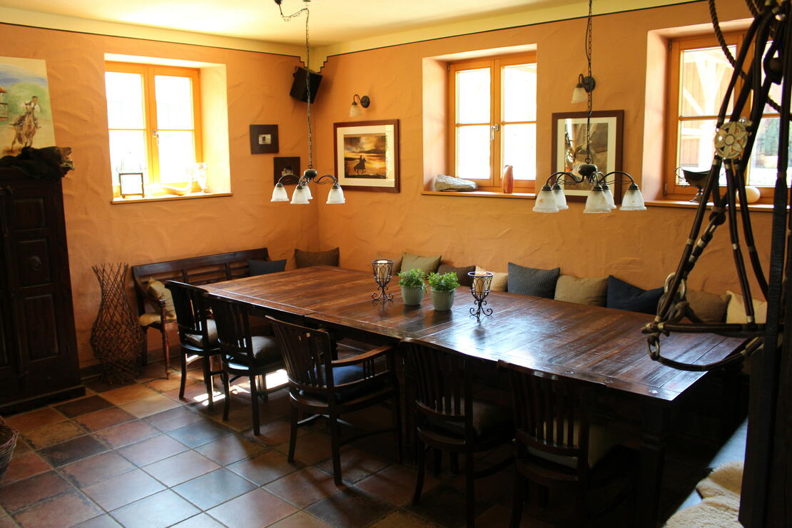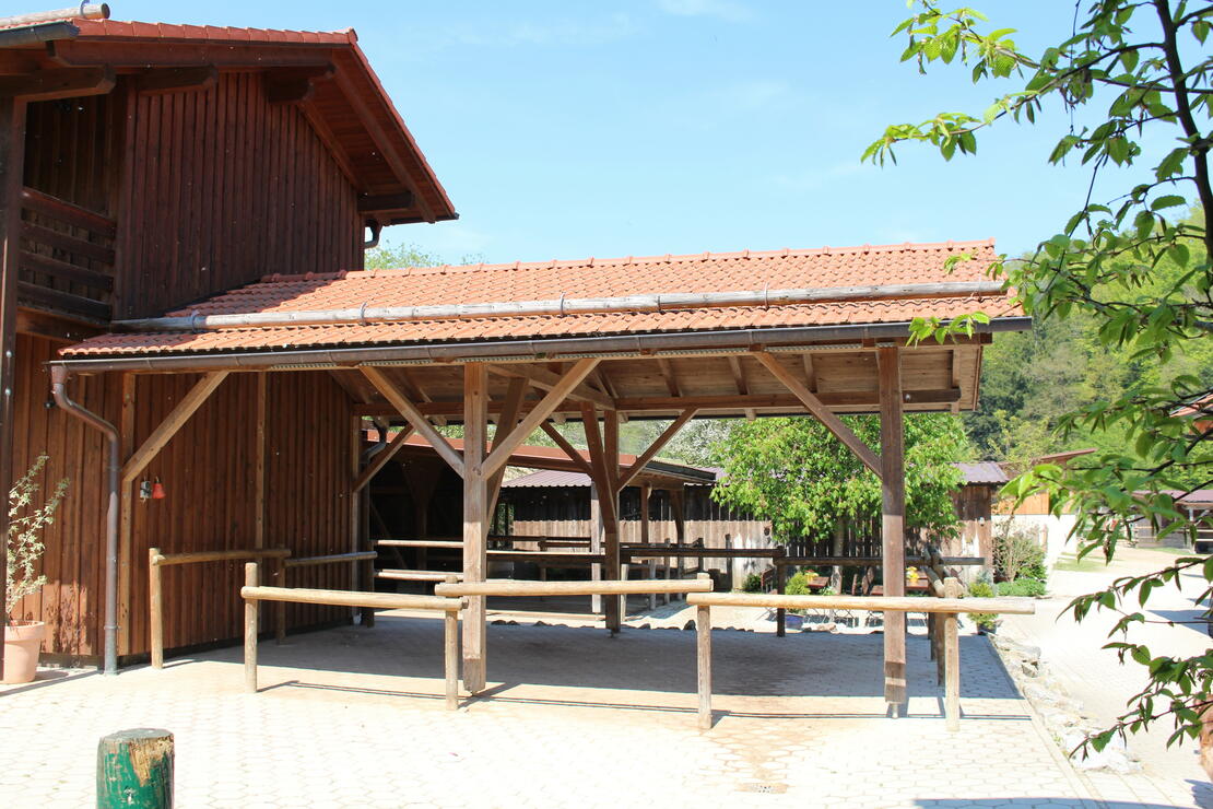 Der Hof hat einen großen Überdachten Putz-/ und Waschplatz und eine verschließbare Sattelkammer. Im Stüberl kann man sich wunderbar bei offenem Kaminfeuer aufwärmen oder auf der Terrasse gemütlich die Ruhe genießen. Das Ausreitgelände befindet sich ohne Straßenüberquerungen direkt vorm Hof und ist mehrere Kilometer groß.