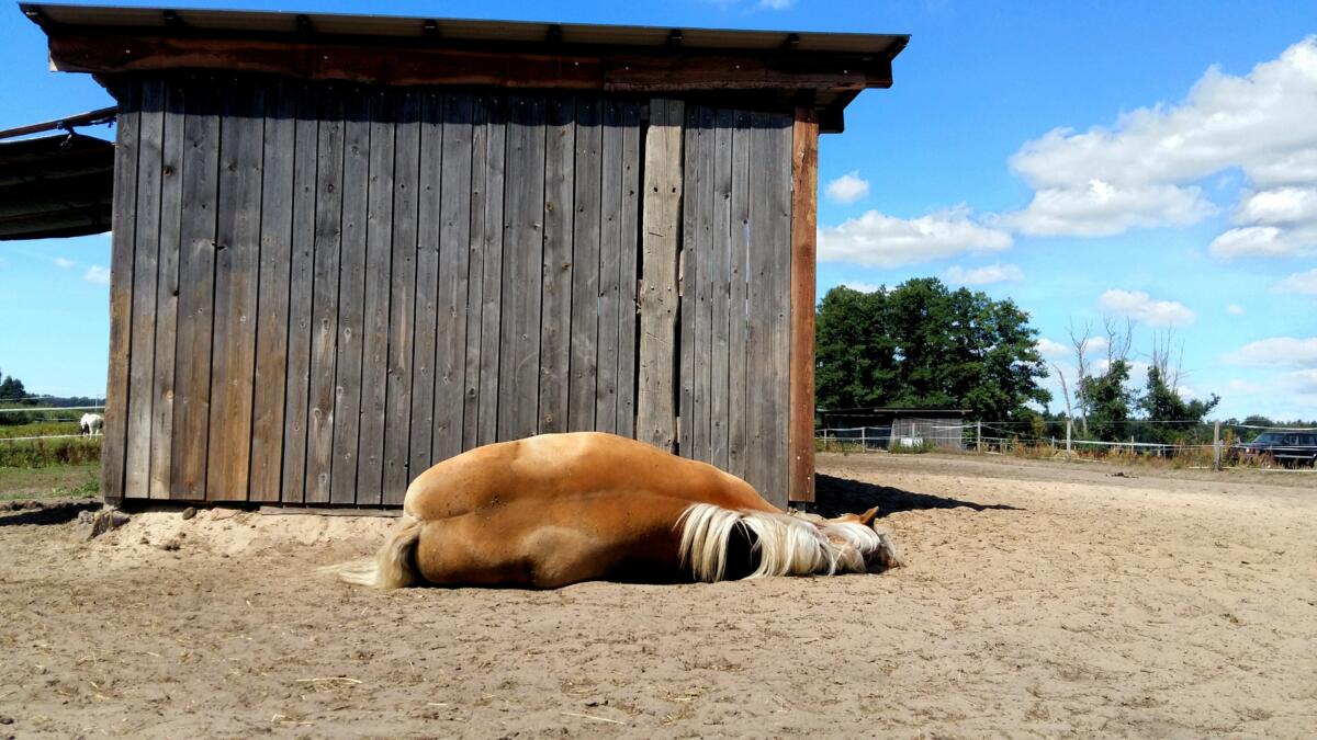 In den Allergikergruppen hat ein hustenfreies Management immer Priorität. der Stellplatz beinhaltet im Sommer Weidegang und im Winter Raufutter in Raufen zur Verfügung (hochwertige Heulage Landwirtschaftsbetrieb Gade, Wandlitz), tägliche Gesundheitskontrollen, regelmäßiges Abmisten des Paddocks und regelmäßiges Schleppen der Wiesen, Wasser und Salz zur permanenten Verfügung (alte Wiesen OHNE Kuhgräser) gefüttert wird eine relativ trockene Heulage die sehr gut vertragen wird. Negative Begleiterscheinungen wie permanentes Kotwasser o.ä. aufgrund minderwertigen, zu feuchten, überdüngten oder vergorenen Futters sind inakzeptabel großer, jederzeit frei zugänglicher Laufstall in befestigtem Gebäude, sturm- und wetterfest und wunderbar kühl bei Hitze und ein grandioser Schutz vor Insekten und Nässe bzw großzügige Lauffläche mit großem wetterfesten Unterstand und Baumbestand und in der Sommersaison. Der Paddock verfügt über Unterstellmöglichkeiten und Schattenplätze.