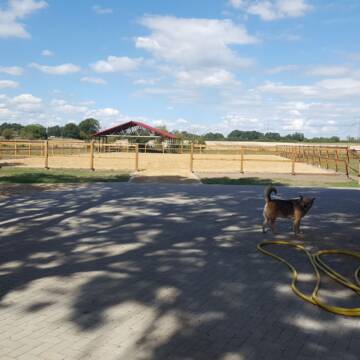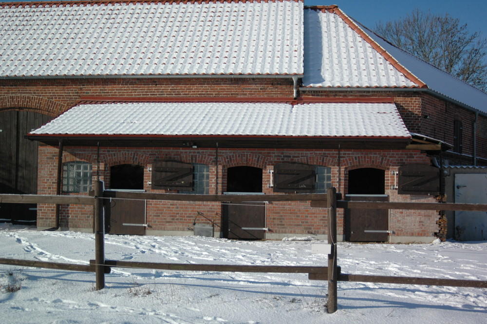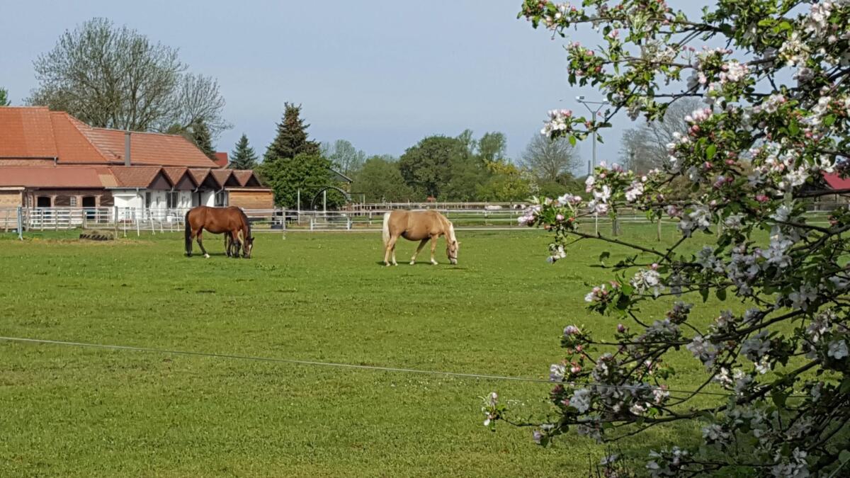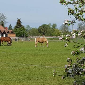 Erleben Sie das Glück dieser Erde auf dem Rücken Ihres Pferdes - wir kümmern uns um den Rest. Klein aber fein - familiär geführter Privatstall ohne Turnierbetrieb und Schulbetrieb bietet Boxen mit täglichem Weidegang in Gruppenhaltung. Unsere Anlage verfügt über einen beleuchteten Reitplatz, Naturspringplatz und herrliches Ausreitgelände in den Naturpark Märkische Schweiz. Für das menschliche Wohl gibt es ein Reiterstübchen mit Kamin und Teeküche, für das Pferdegeschirr eine im Winter beheizte Sattelkammer. Unsere Pferde kommen ganztägig auf großzügige, ausreichende Bewegung gewährende Grün-Koppeln und erhalten bis zu 3xtäglich Heu, zur Nacht wird jedes Pferd in seine Box geführt, die Boxen werden täglich gemistet. Der Pensionsbasispreis beträgt ab April 2023 370,00 EUR (Box, Misten, Heu, Koppelgang, Nutzung der Anlage), individuelle Fütterung und Kraftfutter sowie weitere Leistungen können hinzugebucht werden.