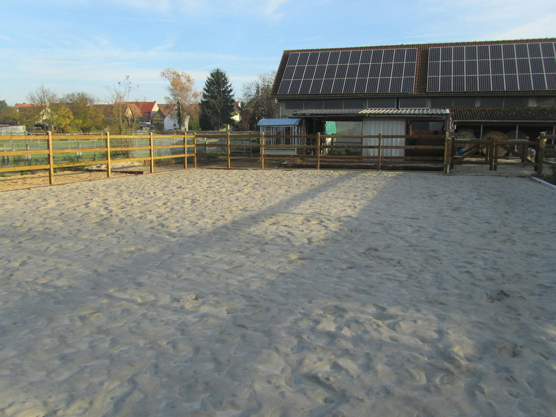 Ein Reitplatz und eine Reithalle sowie ein tolles Ausreitgelände runden das Angebot ab.