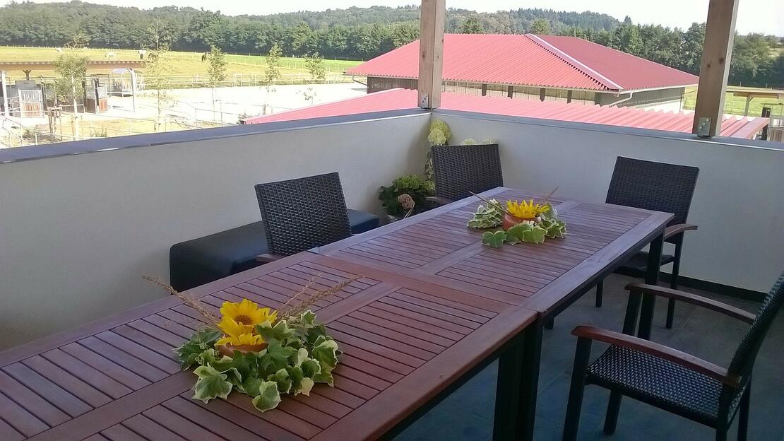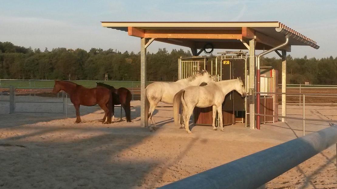 Aktivstall Stuten und WallacheHeu ad libitum über Heuraufen oder rationiert über Heustationen der Firma "Schauer" möglich. Kraftfutter wird über eine Kraftfutterstaion der Firma "Schauer" zur Verfügung gestellt. Weidegang ist indidviduell möglich, Vollpension 7 Tage |
