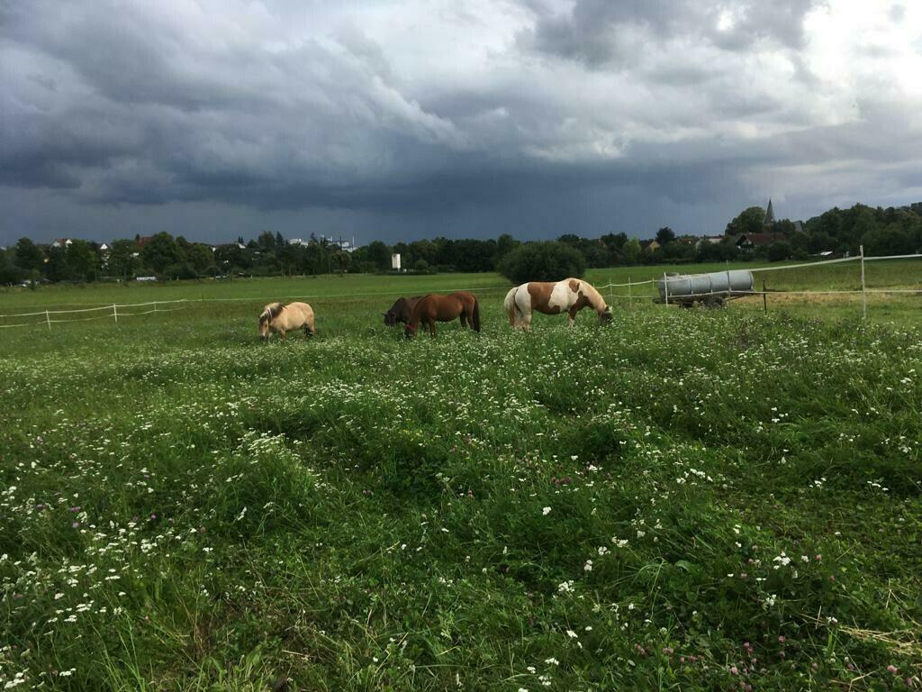 Wir sind ein kleiner Familienbetrieb mit insgesamt 10 Pferdeboxen in unmittelbarer Nähe (ca. 300 m) des Reitsportvereins Hungen mit seinen Reithallen und Abreitplätzen. Unsere Mieter sind meist langjährig bei uns. Wir machen unser Heu und Stroh selbst und achten sehr auf gute Qualität. Im Sommer stehen die meisten Pferde 24 Stunden auf unseren Koppeln(ca. 5 ha), die sich alle in unmittelbarer Stallnähe befinden. Ist das Wetter im Winter regnerisch, werden die Herden auf einem Auslauf zusammen gestellt, wenn es sich anbietet, können die Pferde bei entsprechender Witterung auf die Weide, falls gewünscht. In unmittelbarer Nähe befinden sich weitläufige Felder, Wiesen sowie Waldwege zum gemütlichen Ausreiten. Ab dem 1 März habe ich eine Doppelbox mit weitläufigem Auslauf für 2 Ponys, sowie darüber hinaus einen Stall mit Paddock frei.