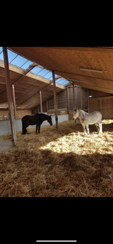 Wir bieten zwei verschiedene Haltungsformen an. Zum einen Paddockboxen und einen Schauer Aktivstall.