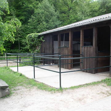 Unsere 46 Boxen bestehen zur Hälfte aus Paddockboxen. Die Preise liegen zwischen 335.- und 365.- € incl. der aktuellen MwSt. Auf dem Hof befindet sich auch eine Führanlage und Solarium. Der Pensionspreis versteht sich einschliesslich 4 x tgl. Füttern und misten.