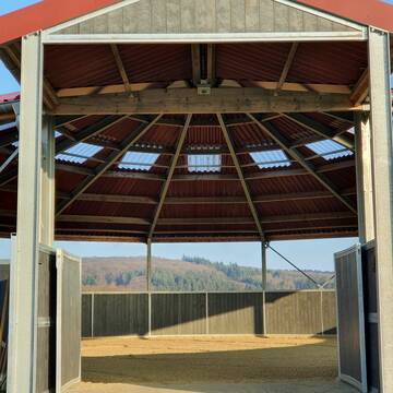 Hofheim-Wildsachsen. Neben einem traumhaften Ausreitgelände ohne Überquerung von Straßen bieten wir - Paddock Einzelboxen - Helle luftige Innenboxen - Heu und Stroh aus eigenem Anbau - Weidegang auch im Winter - Befestigte Winterausläufe mit Heuraufe - Überdachter Reitplatz (20mx40m)
