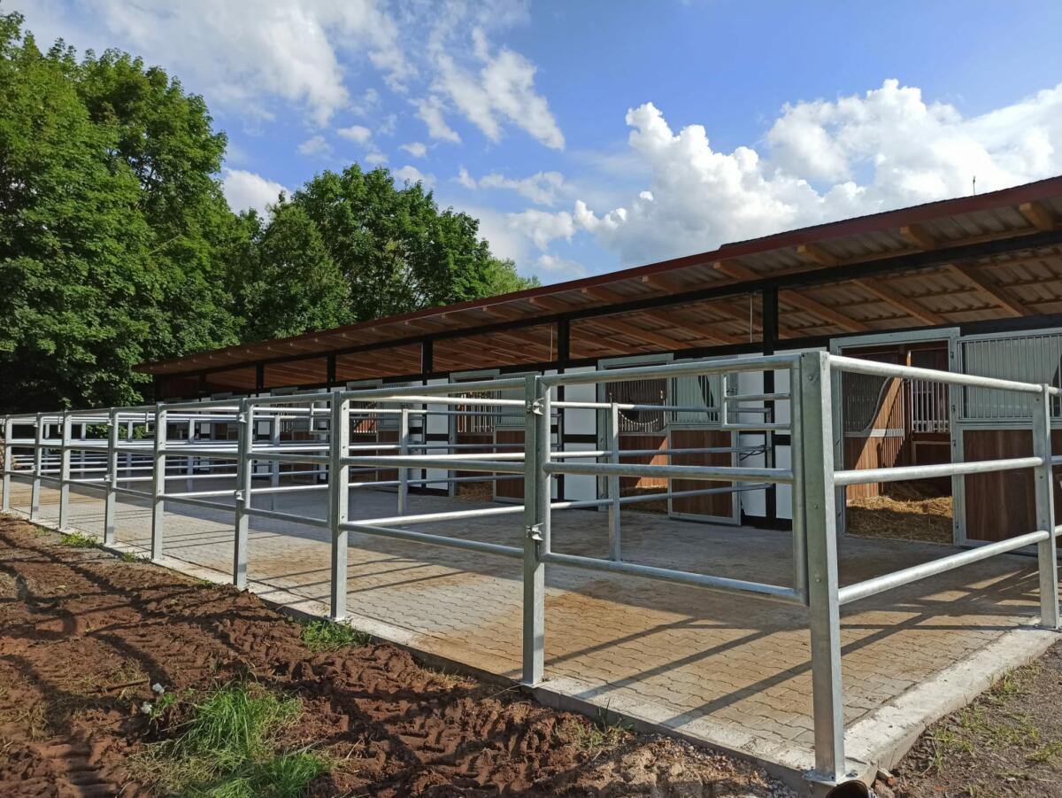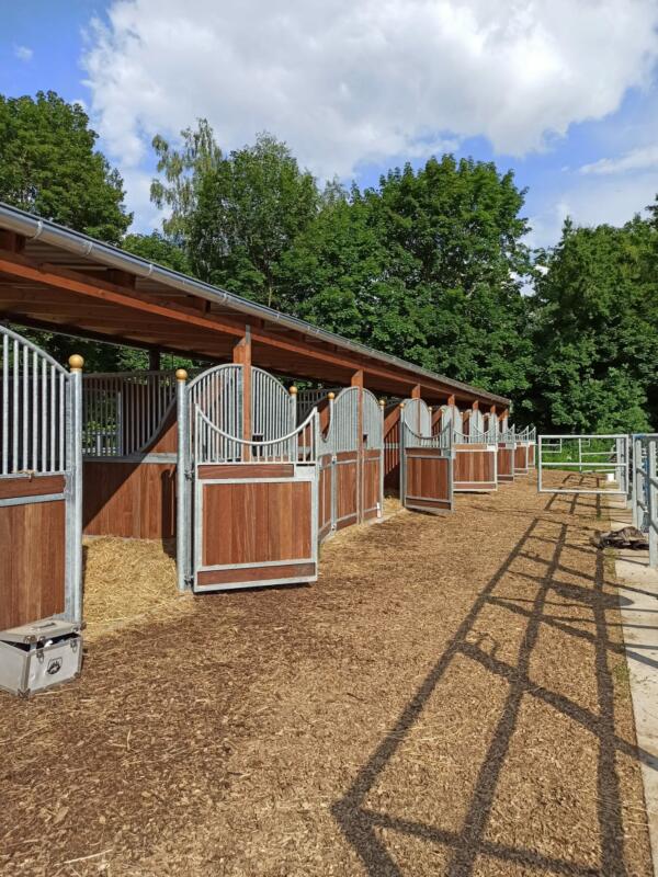 Weitläufige Reitanlage mit sehr großen, hellen Boxen bzw. großen Paddockboxen. Unsere 20x40 Halle hat einen neuen Boden mit Greensan Zusatz für eine optimale Federung. Ein großer 50 x 60 m neu errichteter Springplatz läßt keine Wünsche offen. Für die Dressurreiter haben wir ein großes Viereck mit 20x60 m. Auf befestigten Paddocks (im Winter) und großen Koppeln (in der Weidesaison) können sich die Pferde von der Arbeit erholen. Für Allergiker - Pferde und Pferde mit Atemwegsproblemen haben wir spezielle Boxen, die viel Frischluft ermöglichen. Bei gesundheitlichen Problemen besteht die Möglichkeit der Nutzung eines Equitron Geräts. Für Freizeitreiter liegt ein wunderschönes Ausreitgelände direkt vor der Haustür.