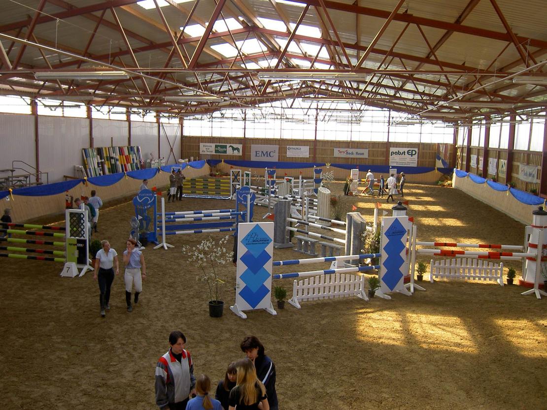 Schöne Reitanlage in 65606 Villmar. Unser Anlage verfügt über 28 Innenboxen in verschiedenen Stalltrakten zu je 7 und 9 Boxen, größtenteils mit Fenster und weiteren 5 Außenboxen mit Paddock. Die Anlage bietet Ihnen einen 25 m x 50 m großen Außenreitplatz und eine 22 m x 50 m große und helle Reithalle. Weiterhin verfügen wir über eine überdachte Freilaufführanlage und 4 je 200m² große Sandpaddocks, sowie kleine und große Koppeln.