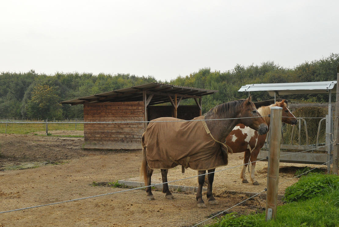Paddockbox, 5x4m+40m² Paddock1 x Misten pro Tag, ganztägig Heu und Hafer frei |