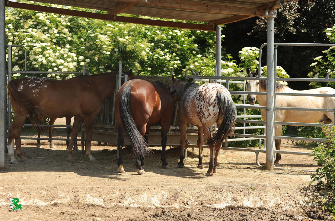 Offenstallplatzmax. 6 Pferde je Offenstall, 1 x Misten pro Tag, ganztägig Heu, Hafer frei |