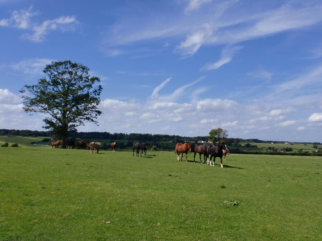 Sie können bei uns Ihr Pferd ab 225,00 € in Vollpension monatlich verwöhnen lassen. Wir verfügen über sehr große Weideflächen (mehr als 50 ha am Hof), auf denen die Herden in Gruppengrößen von 10 - 20 Pferden harmonisch grasen und laufen können. Aufgrund der großen Flächen, die den einzelnen Herden zur Verfügung stehen ( die meisten zwischen 6, 10 und 15 ha ) können die Pferde ihrem eigenen Bewegungsdrang folgen. Dieser Raum führt aber auch ebenfalls zu der bei uns typischen Ruhe und Harmonie innerhalb der Gruppe.