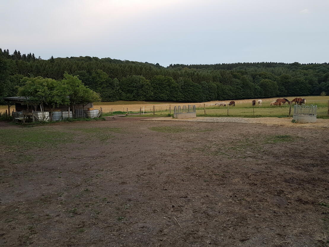 Ab Mitte Februar geht die gesamte Herde jedes Jahr für 6 Wochen in die Eifel auf eine große Wiese mit Unterstand bei einem supernetten Wanderreiterhof. Dort kann man sich auch tageweise einmieten, um die schönen Wege zu reiten und die Eifelnatur zu genießen. Oder aber selbst in Urlaub fahren! Den Weg dorthin reiten wir immer gemeinsam an 2 Tagen mit Hängerbegleitung und Übernachtung bei Monschau. Es entstehen im ersten Jahr keine Übernachtungskosten für den Reiter.