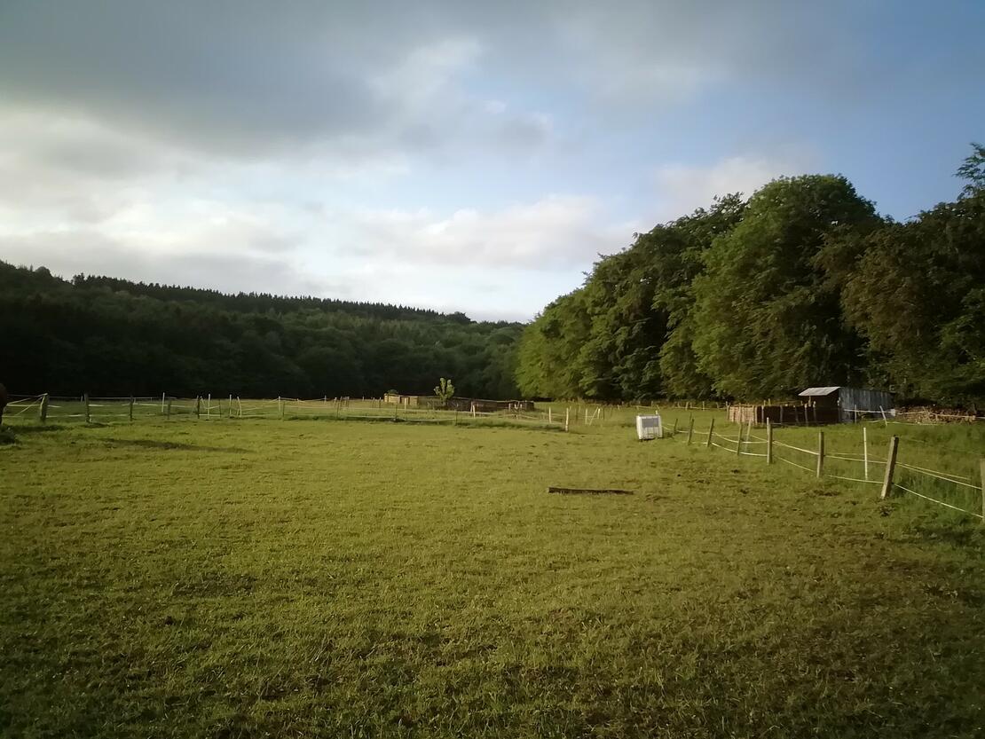 Im Winter eigene Bio-Heulage als Zusatz zur Winterweide. Die Weide ist doppelt umzäunt und bestmöglich gegen Hunde/ Wölfe geschützt. Seit mind. 10 Jahren keine Ausbringung von Kunstdünger mehr. Einfache Reitwiese u Longierzirkel können wetterabhängig genutzt werden. Einzeloffenstall als Krankenbox / für Besuchspferd ist vorhanden. Angebot incl. Vollversorgung, Kraft- und Mineralfutter, Wurmkuren, Organisation unseres Schmiedes. Gemeinsame Nutzung eines stationären Wohnwagens, zusätzlich Zeltmöglichkeit. Bei Eignung Nutzung eines Begleitpferdes sowie unseres erfahrenen Shettys für Kinder möglich. Hängernutzung eventuell möglich nach Absprache.