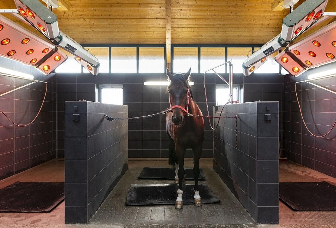 Unser Zucht- und Ausbildungsstall liegt mitten in der Mecklenburgischen Seenplatte und bietet Sport- und Zuchtpferden sowie dem Nachwuchs beste Bedingungen zum Wachsen und Gedeihen. Auf unserer Anlage stehen Ihnen zwei Reithallen mit den Maßen 18m x 45m, bzw. 25m x 60m zur Verfügung. Unsere große Reithalle, unser 60m x 75m große Springplatz und unsere Rennbahn verfügen über ein modernes Ebbe-und-Flut-System, damit der Boden unabhängig von äußeren Bedingungen stets perfekt ist. Weiterhin stehen eine Führanlage und eine Longierhalle zur Verfügung. Für das Konditionstraining oder einfach mal zum Entspannen bietet sich ein sehr schönes Ausreitgelände an, das direkt hinter unserem Hof beginnt. Unser Casino bietet Raum für gemütliches Beisammensein, Veranstaltungen oder Seminare. Bei schönem Wetter können Sie auf unseren Terrassen die Sonne genießen. Insgesamt 52 geräumige Boxen warten auf unserem Hof auf Ihr Pferd. Für Pferde, die nicht gearbeitet werden, gibt es Lauf- und Aktivställe. Täglicher Gang auf unsere Paddocks ist auf Wunsch möglich. Wir haben geräumige Waschboxen mit Solarien in all unseren Stalltrakten. Für Ihr Equipment stehen Sattel- und Deckenkammern zur Verfügung. Unsere Industriewaschmaschinen und -trockner können nach Absprache genutzt werden.