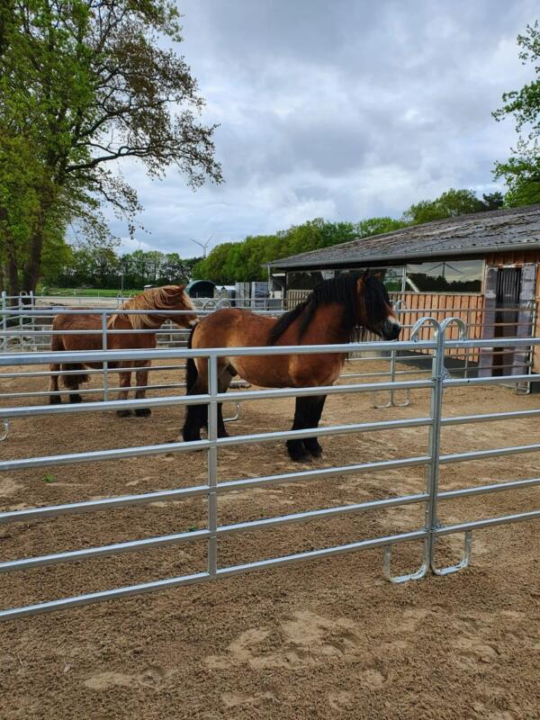 ——NEU—— 1 Offenstall Stuten 24/7 356 Tage Heulage (über 1,5 Hektar groß, ein halber km Trail als Bewegungsanreiz, 1000qm befestigte Sandfläche mit Paddockplatten, 80 qm trockene Liegefläche, mehr Fressplätze als Pferde, 8 Pferde, Baumstämme, Lecksteinstamm, Weide selbstgesteuert)