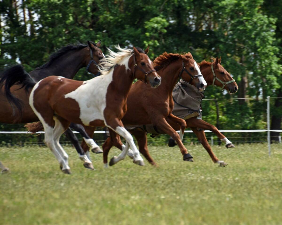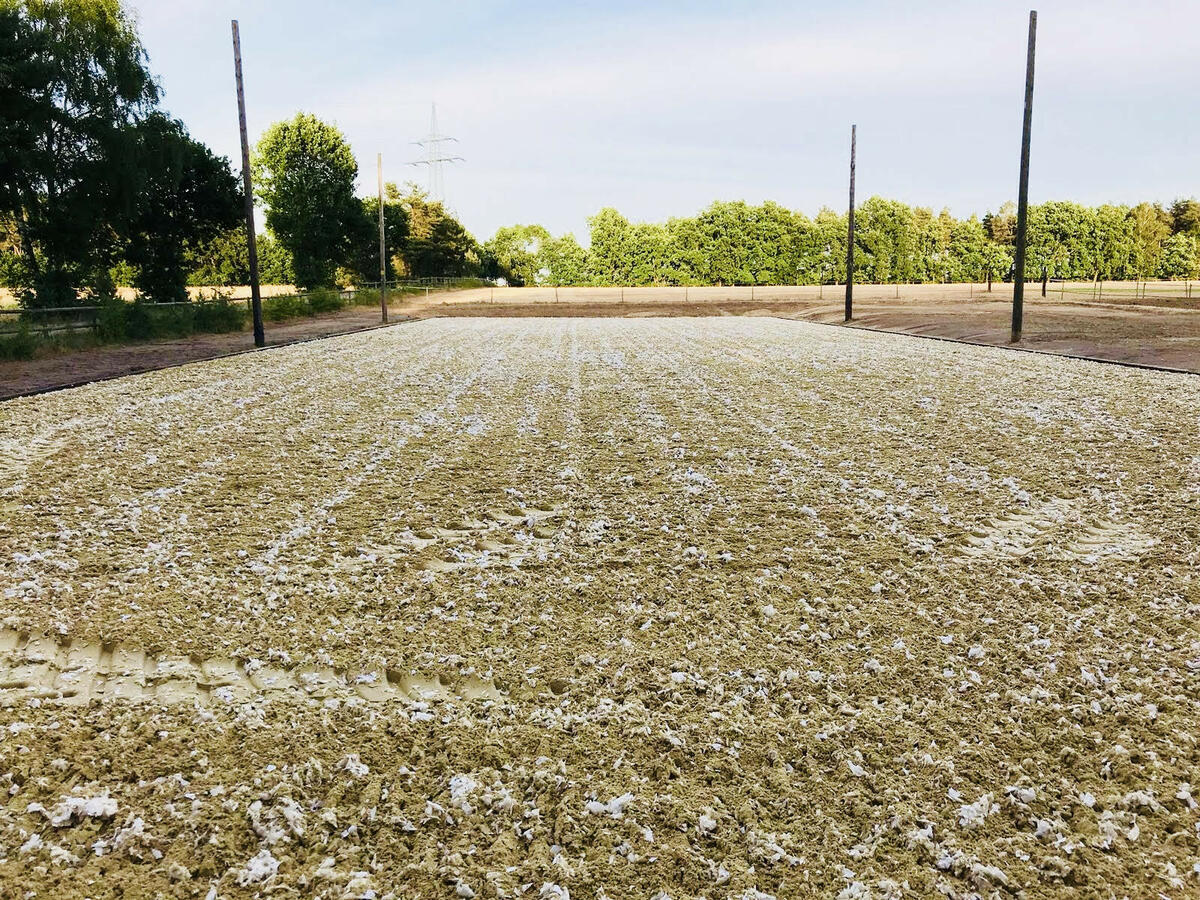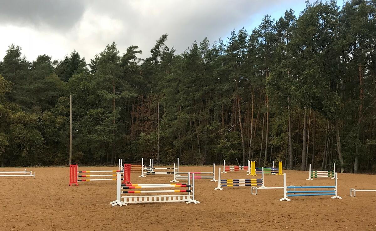 Reithalle 20x40m, inkl. Beregnungsanlage und LED Beleuchtung Dressurplatz 20x60 frisch saniert großer Springplatz Neuer Parcours Longierzirkel Waschplatz Solarium WC optimales Ausreitgelände Ganztägiger Weidegang auf der Weide (Sommer) oder mit Heuraufe (Winter) auf den Paddocks.