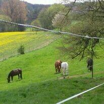 24 Std. Weide, von Ende April bis Anfang Oktober können die Pferde in kleinen Herden von 4 - 6 Pferden
