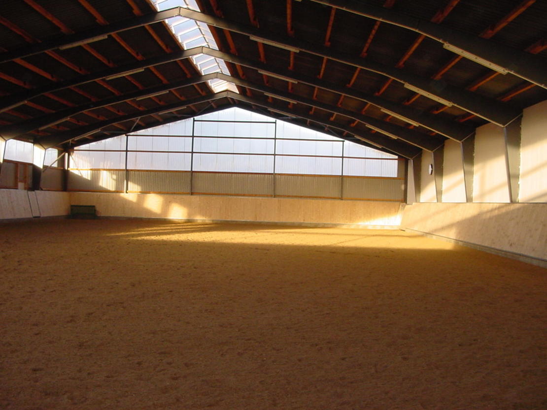 Privat geführte Reitanlage mit lichtdurchfluteter Reithalle (40m x 20m), Außendressurplatz (60m x 20m), Longierhalle (18m) und Longierzirkel. Unsere Reitanlage zeichnet sich insbesondere durch optimal durchlüftete Stalltrakte (ohne Zugluft), Sauberkeit und Qualitätsfutter aus. Es ist für uns selbstverständlich, dass die Pferdeboxen täglich gründlich gemistet und frisch mit Stroh bzw. Späne eingestreut werden. Zu jeder Pferdebox gehört ein eigenes, großzügig angelegtes Außenpaddock, welches ganzjährig von den Pferden genutzt werden kann. Das tägliche Hinausführen und wieder Hereinbringen der Pferde gehört zu unserem Service. Aufgrund der individuellen Betreuung der einzelnen Pferde sind Rekonvaleszenspferde und Pferderentner genauso herzlich willkommen, wie Freizeit- und Sportpferde.