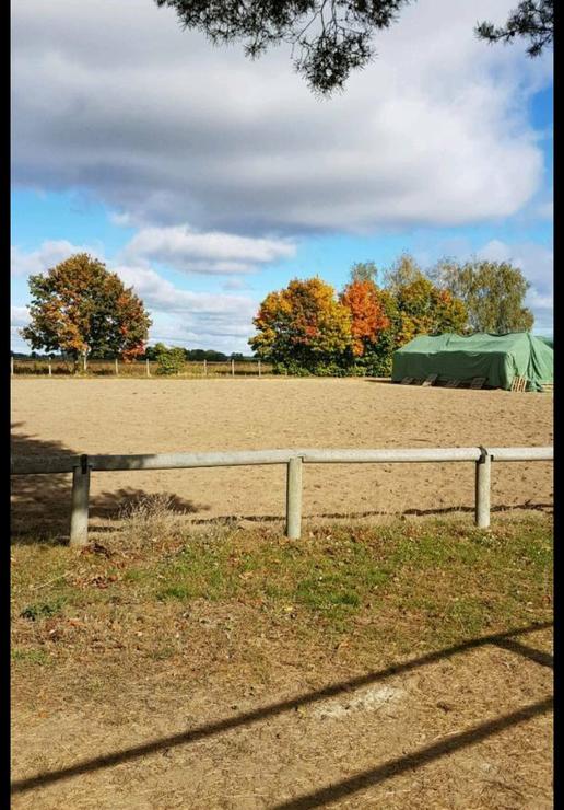 Großer Offenstall Wallachgruppe max. 10 Pferde in HP und VP großes Paddock mit 2 Heuraufen,1 Strohraufe, Unterstand und frostfreier Tränke