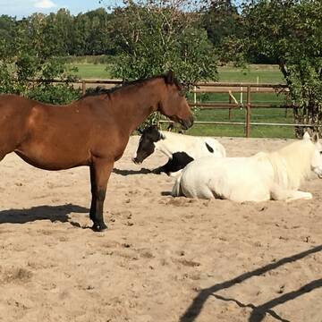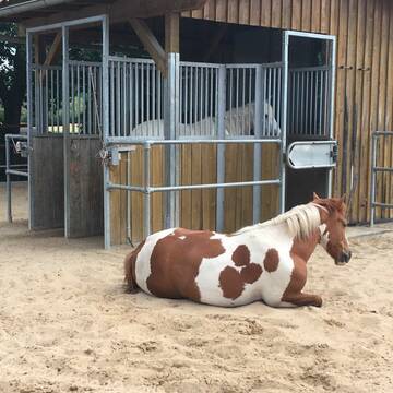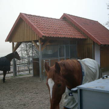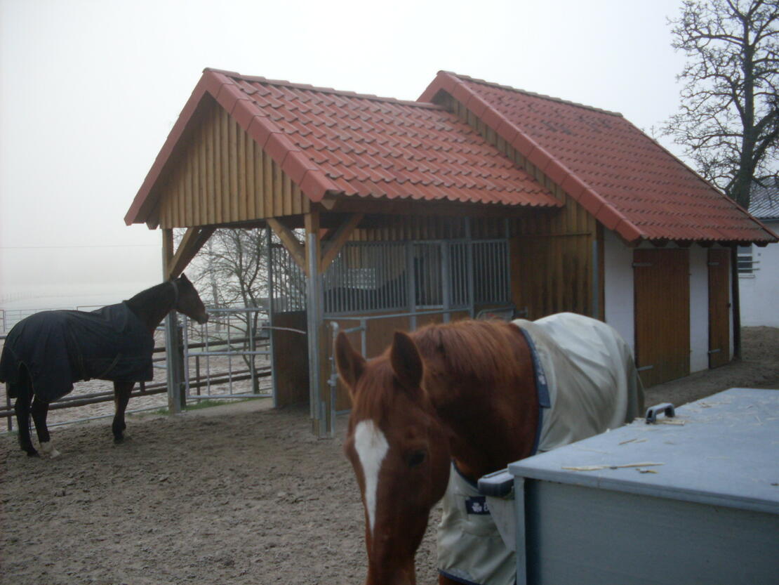 Wir sind ein Hit-Aktivstall mit automatischer Fütterung. Auf über 2500 qm haben bis zu 20 Pferde Platz. Die anschließenden Weiden bieten weiteren Auslauf. Ein großes Ausreitgelände schließt sich an. Gras wird mit Selen gedüngt. EM-Fütterung möglich. Neu haben wir eine Soleinhalationsbox.