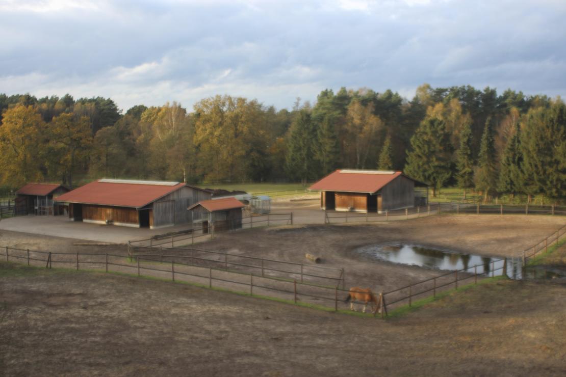 Pferde finden hier ein Zuhause im Herdenverband. Großer Integrationsbereich. Durch die Anordnung der unterschiedlichen Funktionsbereiche sind sie ständig in Bewegung. Zusätzlich sorgen 6 ha Wiesen, die mit einer fructanarmen Saat speziell für Pferdeweiden angelegt wurden, für reichlich Abwechslung.