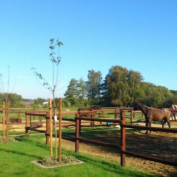 Reiterhof mit Boxen Zum Teil mit Paddockställen Hofnahe Sommerweiden Trockene Winterpaddocks Reithalle, Reitplatz und Roundpan