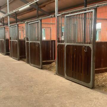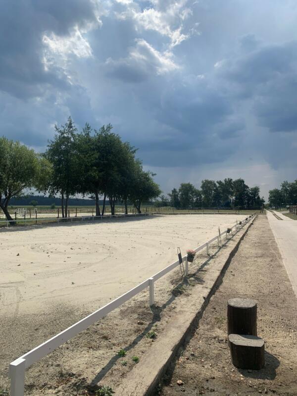 Am Südrand Harsefelds betreiben wir eine Reitsportanlage mit hellen, luftigen Außenboxen, welche mit Warmwassertränken ausgestattet sind und von unseren Mitarbeitern täglich komplett ausgemistet werden. In der Woche werden die Pferde von uns täglich auf die Weiden oder auf Paddocks gestellt, am Wochenende organisieren die Einstaller sich selbst. Wir füttern zweimal am Tag Heu, welches z.T. über den Dünger mit Selen angereichert ist, Kraftfutter ( Derby Sport und/oder Hafer-Gerste-Mix) geben wir dreimal am Tag. Zur Reitanlage gehört eine 20 x 40 m große Reithalle, mit fast ganzjährig bereitbarem speziellem Wattboden sind unser 20 x 60 m Dressurviereck und der große Springplatz befestigt.
