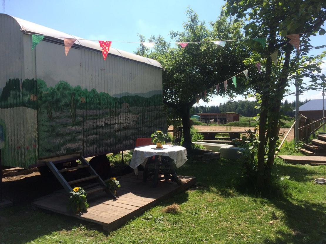 • ein beheizbarer Kunst-Bauwagen zum Chillen und Aufwärmen.