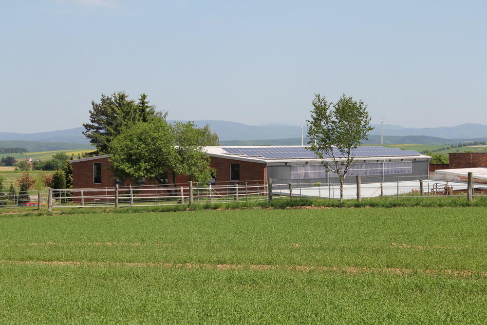 Beide Ställe sind direkt mit der Reithalle ( 20X40m ) verbunden. Die Reithalle hat eine Trenn- und Tretschicht der Fa. DS Reitsand bekommen. Insgesamt stehen für die Pferde 16 Weideflächen in unmittelbarer Nähe zur Verfügung.
