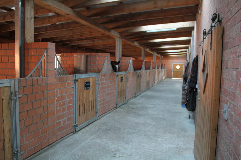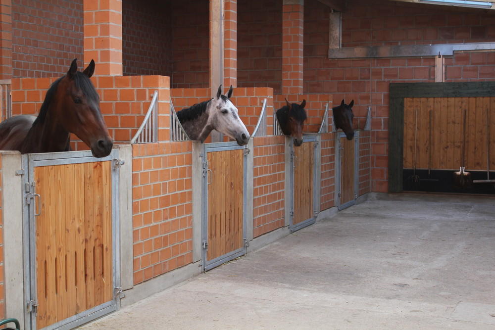 Auf unserer Anlage befinden sich in zwei gebauten Ställen insgesamt 22 große, helle und pferdegerechte Außenboxen mit Paddock. Dabei haben wir komplett auf Gitterstäbe verzichtet.