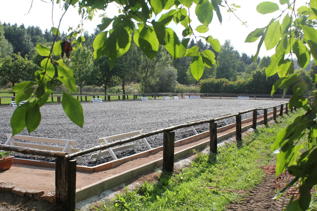 In ruhiger und idyllischer Lage zwischen Wald und Wiesen liegt unsere private Reitanlage. Wir bieten Ihnen ein wunderschönes Gelände für Ausritte direkt in die Natur - fernab vom Straßenverkehr.