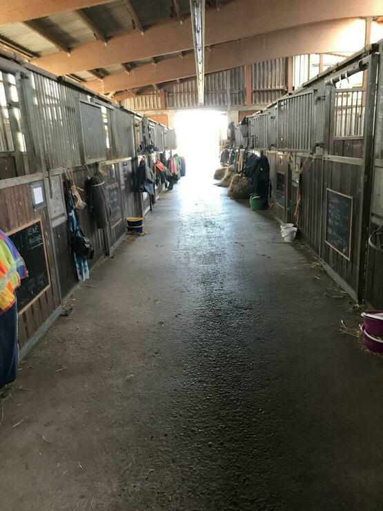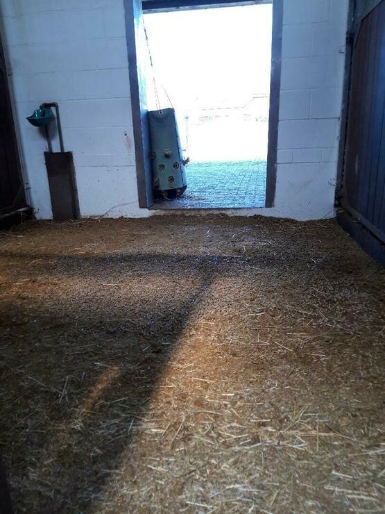 Der gesamte Stall steht auf Strohpellets. Jede Box verfügt über eine Heuraufe für die optimale Fütterung.