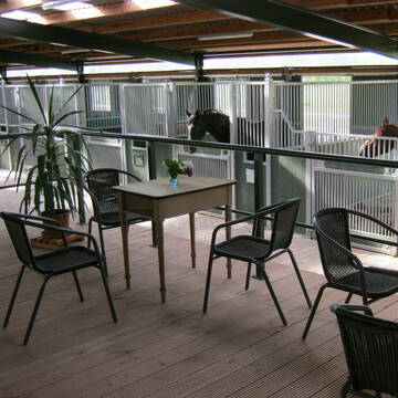 Neue Stallanlage mit hellen,großzügigen Boxen ,wahlweise mit oder ohne Paddock.Die Boxen werden täglich entmistet.Regelmäßiger Weidegang in einer Gruppe oder einzeln.Individuelle Betreuung und Pflege jedes einzelnen Pferdes. Es steht eine 20*40er Reithalle ,ein großer Roundpan und ein weitläufiges Gelände zum Training zur Verfügung.Des Weiteren gibt es eine Waschbox und ein Solarium. Ein Trainer für Dressur und ein Trainer für Western kommen nach Absprache auf die Anlage .Reitunterricht für Kinder und Jugendliche, Anfänger und Fortgeschrittene auf gut ausgebildeten Westernpferden ist möglich. Unsere Haltung ist besonders für Stauballergieker und Kopper geeignet. Der Betrieb ist von der FN mit vier Sternen ausgezeichnet.