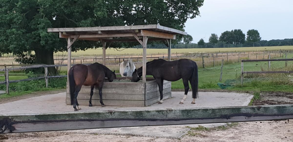 Du hast einen Allergiker? Dafür stehen 3 weitere Bereiche zur Verfügung Offenstall für maximal 4 Pferde Plätze in Aktivstall für 2 Pferde die eher nicht in größeren Gruppen stehen