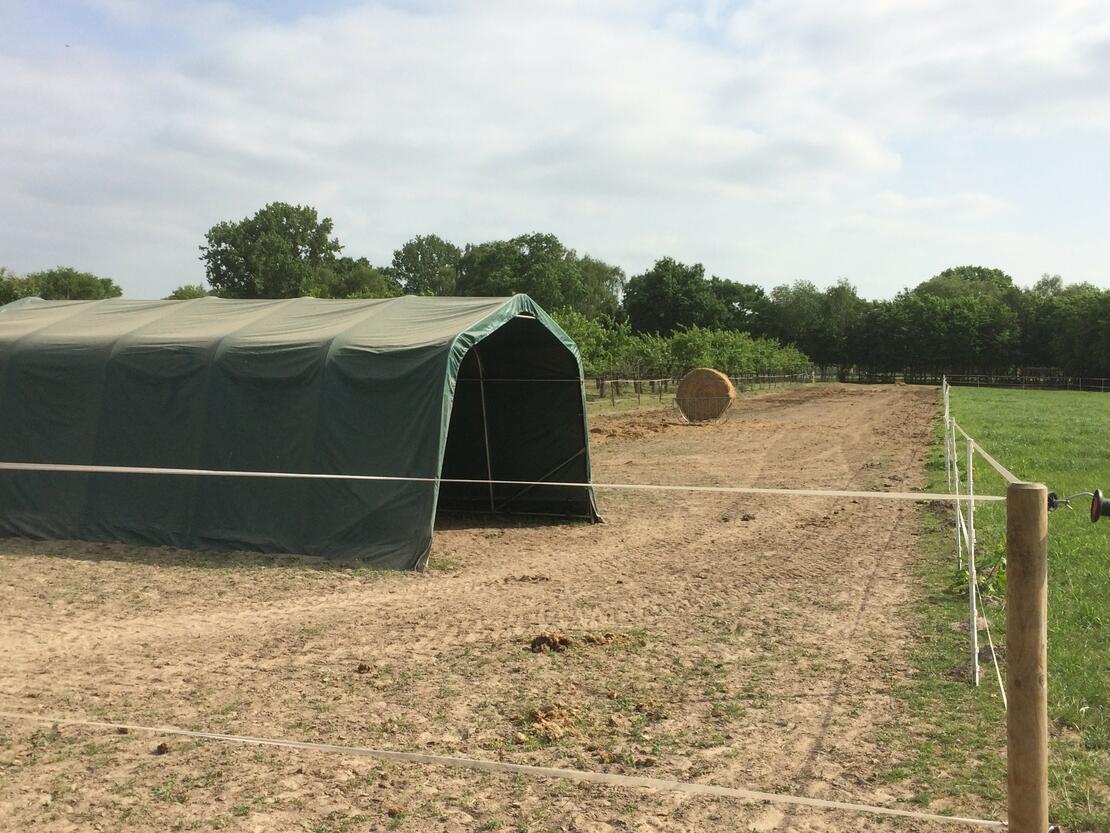 Offenstall m.Trail, Sole, Sandpaddock (Rehe o.Ä)