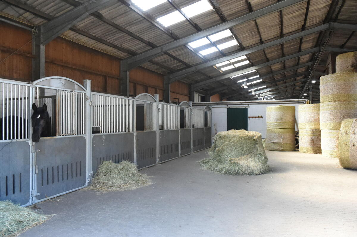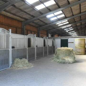 Wir bieten ab sofort 1-3 freie Einstellplätze in unserem kleinen aber feinen Pensionsstall (9-12 Pferde), integriert in unserem renommierten Zucht- und Ausbildungsbetrieb. Vom Fohlen, über die Aufzuchtpferde und Zuchtstuten bis zum Reitpferd, haben bei uns ca. 55 Pferde ihr Zuhause. Durch unsren landwirtschaftlichen Betriebszweig stellen wir das Futter in höchster Qualität selbst her. Unterricht wird angeboten von der Auszubildenden (mit S-Erfolgen) und der Betriebsleiterin und Pferdewirtschaftsmeisterin (klassische Reitausbildung, S-Erfolge). Ausreitgelände ist vorhanden. Die Boxen sind sehr hell und geräumig. Futterzeiten: zweimal täglich (Heu / Heulage, Hafer, Pellets, Stroh 1x täglich) Weide- bzw. Paddockgang täglich 4-6 Stunden. Zur Anlage gehören eine moderne, helle Reithalle 20 x 43 m mit neuem Boden, Longierhalle, Dressurviereck 20 x 60 m, Weiden, 12 Paddocks, Führanlage. Es wird maschinell gemistet alle 6-8 Wochen. Bei uns fühlt sich der turnierambitionierte Amateurreiter, wie auch der dressurambitionierte Freizeitreiter überaus wohl und weiß die kompetente Führung mit 50jähriger Erfahrung sehr zu schätzen. Stallschließzeiten: Okt-März: montags bis freitags 21.30, samstags 19 Uhr, sonntags 16 Uhr, April bis September: länger