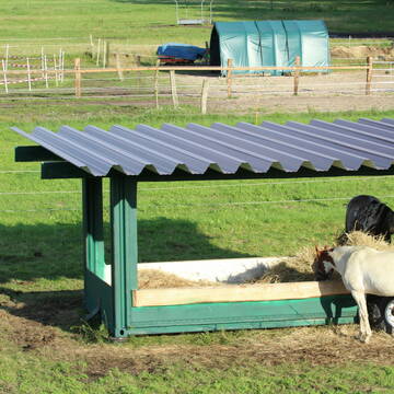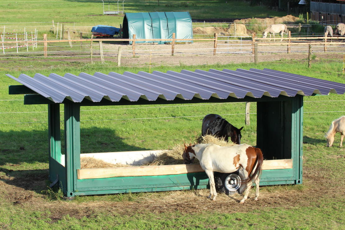 - befestigtes Paddock mit überdachter Heuraufe 16,00 m Fressplatz ca. 50 m² überdacht