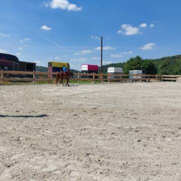 Für die Offenställe stehen Krankenboxen zu Verfügung. Ein Reitplatz, Round Pan, Solarium, Untersuchungsstand, Sattelschrank, Warmwasserwaschplatz und einiges mehr findet man auf der Anlage.